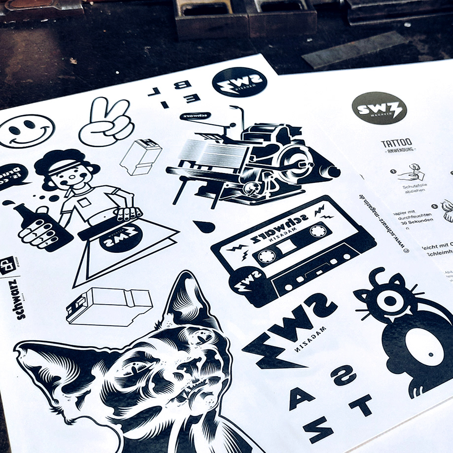 Tattoo-Bogen-Illustrationen für das Schwarz Magazin
