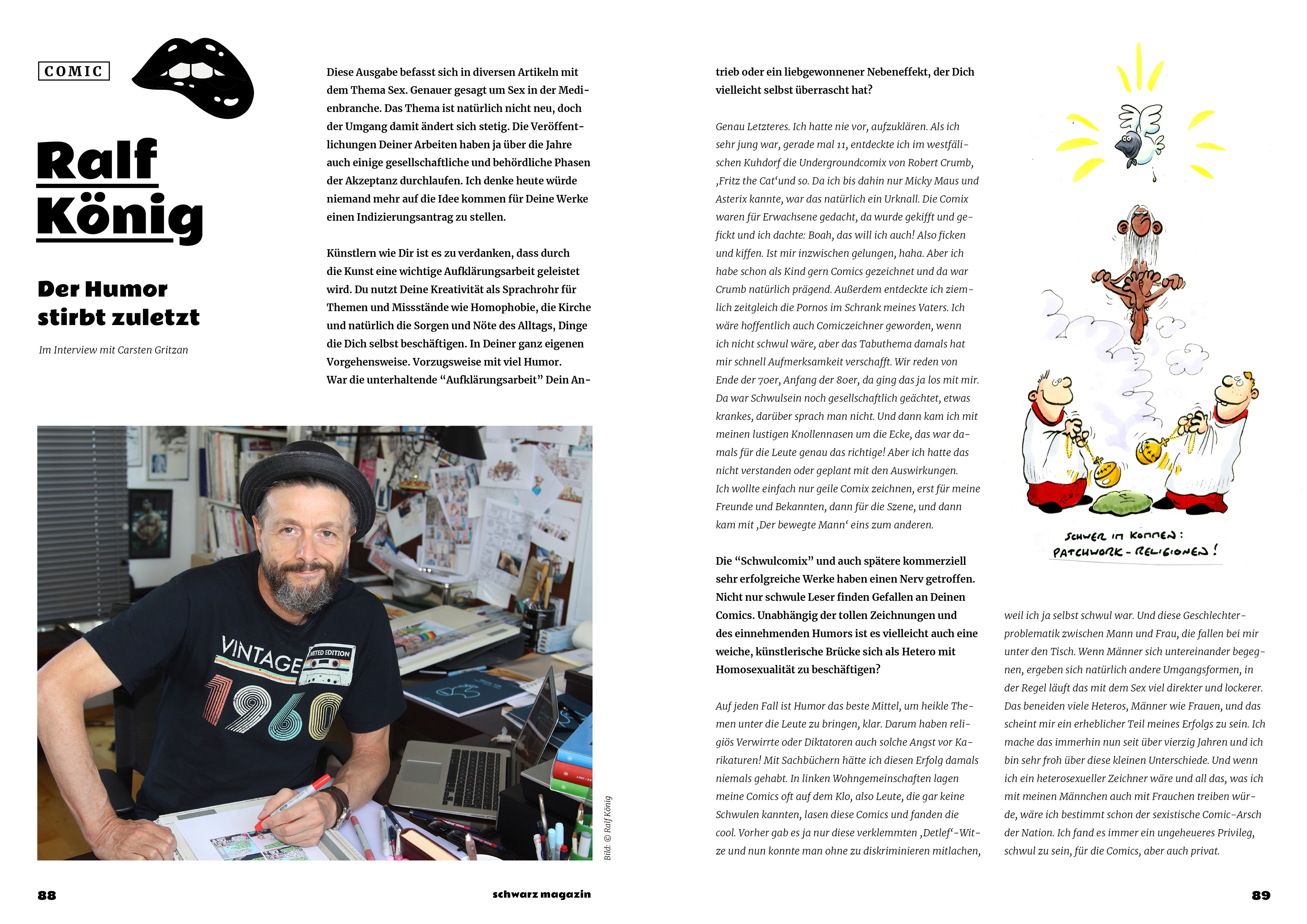 Diese Ausgabe befasst sich in diversen Artikeln mit dem Thema Sex. Genauer gesagt um Sex in der Medienbranche. Das Thema ist natürlich nicht neu, doch der Umgang damit ändert sich stetig. Die Veröffentlichungen Deiner Arbeiten haben ja über die Jahre auch einige gesellschaftliche und behördliche Phasen der Akzeptanz durchlaufen. Ich denke heute würde niemand mehr auf die Idee kommen für Deine Werke einen Indizierungsantrag zu stellen.